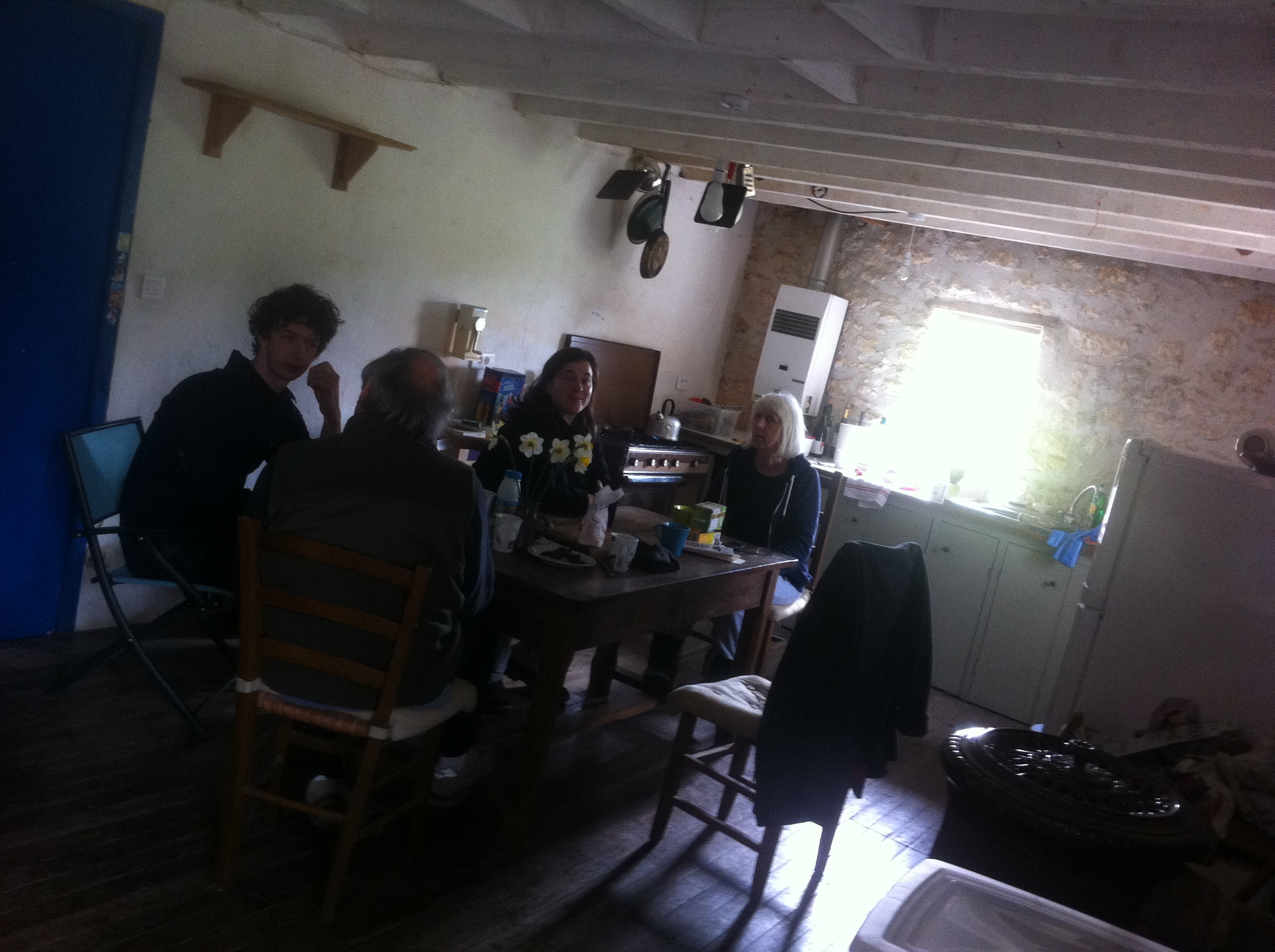 En la casa de Geoffrey nos encontramos con su amiga Belinda (de pie en la foto) y sus dos encantadoras hijas. Belinda es chef en el restaurante Le Calice, de Verteillac. Cocina como los ángeles y tiene el extraño papel en este país, que se precia de tener los mejores cocineros, de ser una inglesa en la cocina.